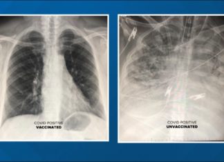 Mjeku publikon imazhet e mushkërive të pacientëve të vaksinuar dhe të pavaksinuar me COVID-19